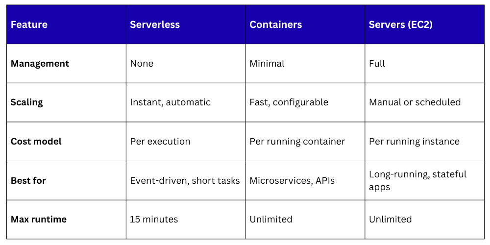 4. Cost efficiency matters — paying only for execution time is significantly cheaper than running idle servers for low-traffic applications.