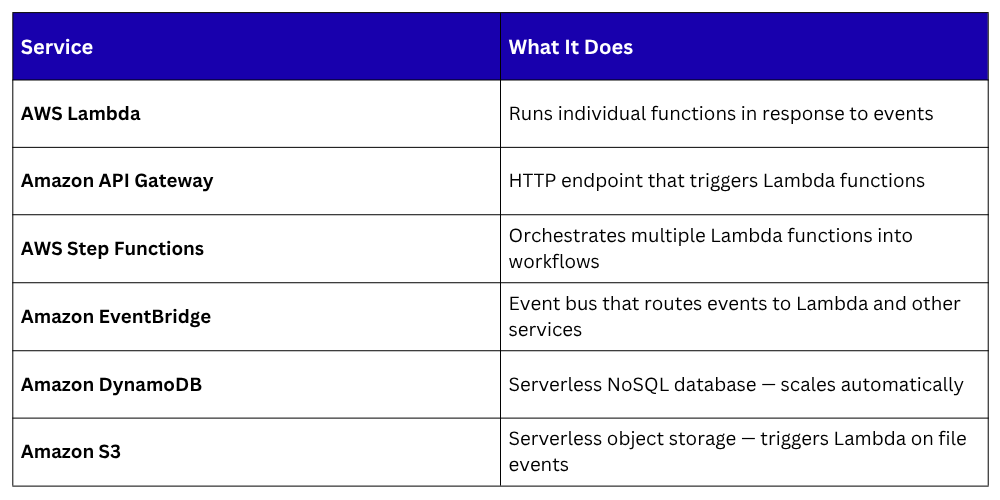Every service covered so far — EC2, ECS, EKS — requires you to think about servers in some form. You choose instance types, manage capacity, and think about what runs where. Serverless removes that entirely. You write code, define a trigger, and the cloud handles everything else.