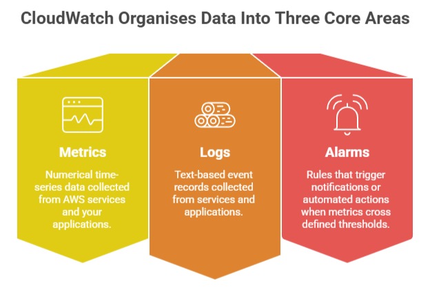 CloudWatch sits at the centre of AWS observability. Every AWS service — EC2, Lambda, ECS, RDS, API Gateway, and more — sends metrics and logs to CloudWatch automatically.