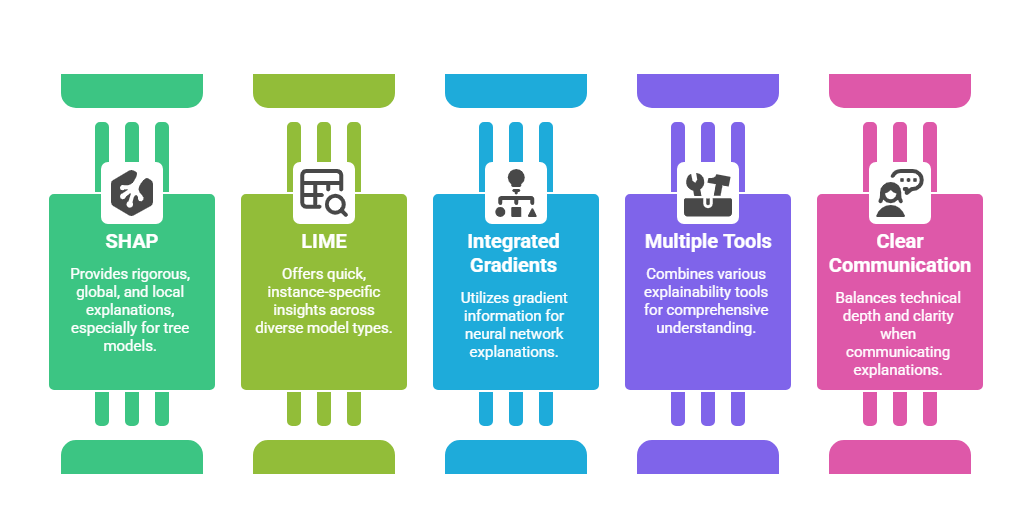 Tools such as SHAP, LIME, and integrated gradients offer distinct methodologies to unravel model decisions, providing insights critical for debugging, fairness assessment, and regulatory compliance.