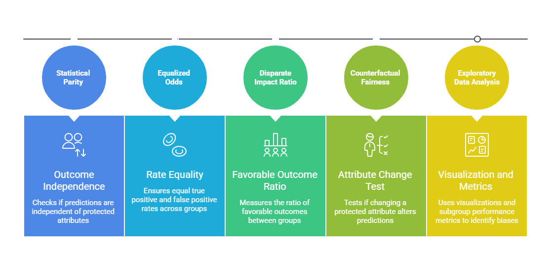 Tools and frameworks such as Fairlearn, AIF360, and What-If Tool facilitate systematic bias detection.