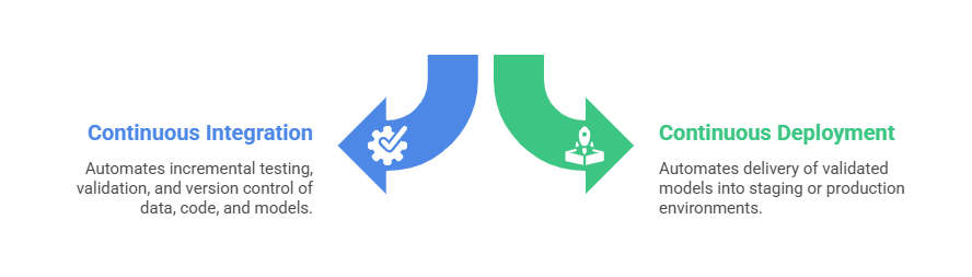 To achieve reliable and maintainable machine learning workflows, CI/CD pipelines incorporate practices for automated training, validation, deployment, and monitoring. Below are the primary building blocks of such pipelines.