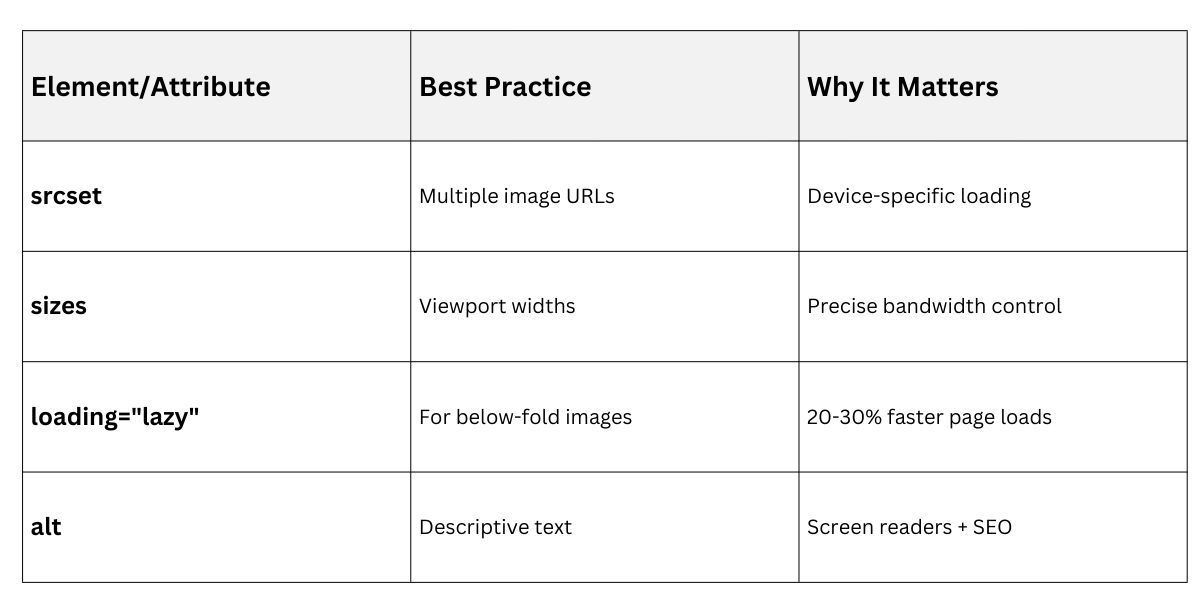 Responsive images adapt to different screen sizes and resolutions, ensuring visuals remain sharp on desktops, tablets, and high-DPI displays.