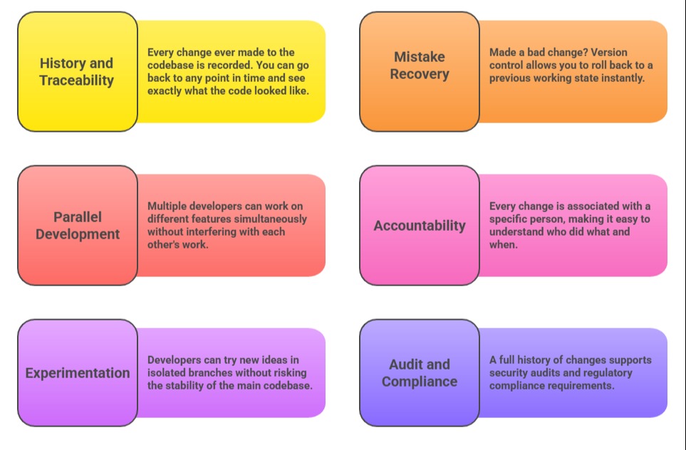 Without version control, software development would be like writing a book with no ability to save drafts, track edits, or undo mistakes.