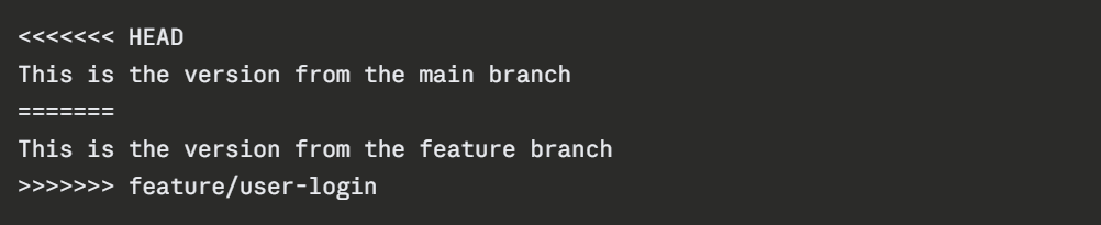 When a conflict occurs, Git will mark the conflicting sections in the file like this: