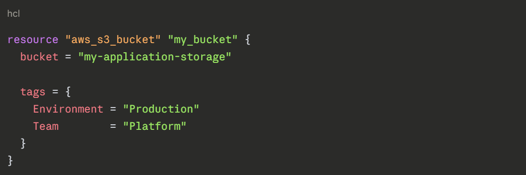 The engineer simply states: this bucket should exist, with this name, with these tags. Terraform handles everything else.