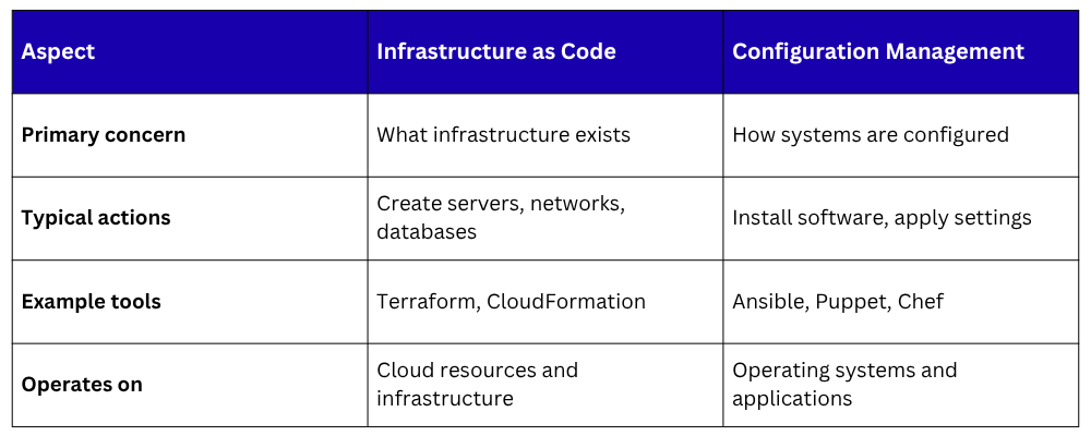 Configuration management and Infrastructure as Code are complementary but distinct practices. A clear understanding of where one ends and the other begins helps teams use both effectively.