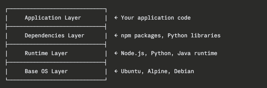 Every image is composed of multiple read-only layers stacked on top of each other. Each layer represents a specific instruction in the image build process — installing a package, copying a file, setting an environment variable.