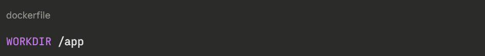 Sets the working directory inside the container for all subsequent instructions. If the directory does not exist, Docker creates it automatically. This keeps file paths clean and avoids the need for full paths in every instruction.