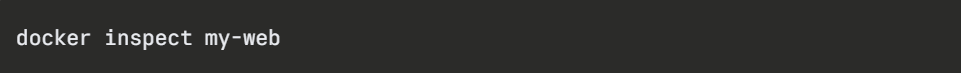 This returns a detailed JSON object containing the container's full configuration — network settings, mounted volumes, environment variables, restart policy, and much more. It is the go-to command when debugging container behavior.
