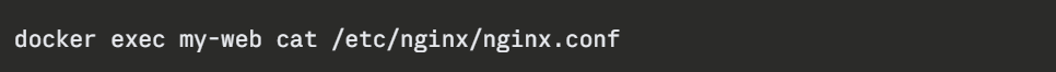 The docker exec command runs a new command inside an already-running container — without stopping or restarting it. This is essential for debugging, inspecting files, and running administrative tasks.