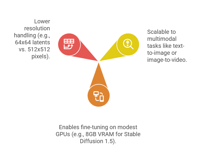 The magic lies in the variational autoencoder (VAE) pipeline, which encodes high-res images into compact latents for diffusion, then decodes them. This decoupling lets the diffusion model focus on semantics, not fine details.
