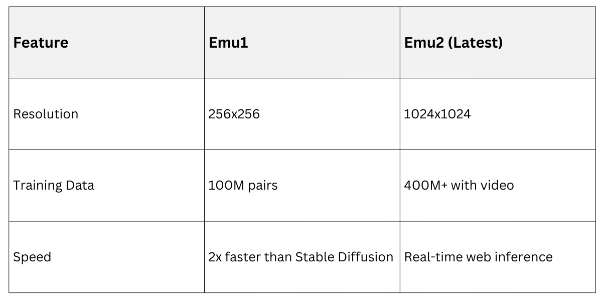 Emu (from Meta, 2023 iterations like Emu2) employs a Unified Visual Token Representation with discrete tokens for images, allowing a language model to "speak" visuals.