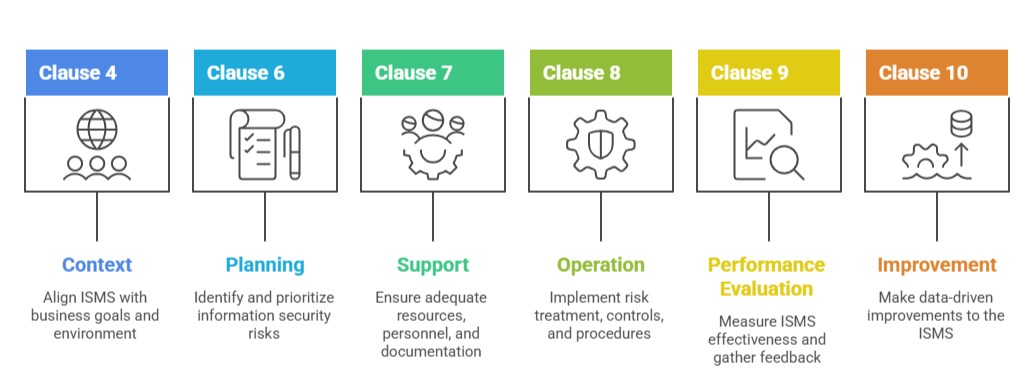 Clause 6: Planning – Covers risk assessment, risk treatment, and setting information security objectives.