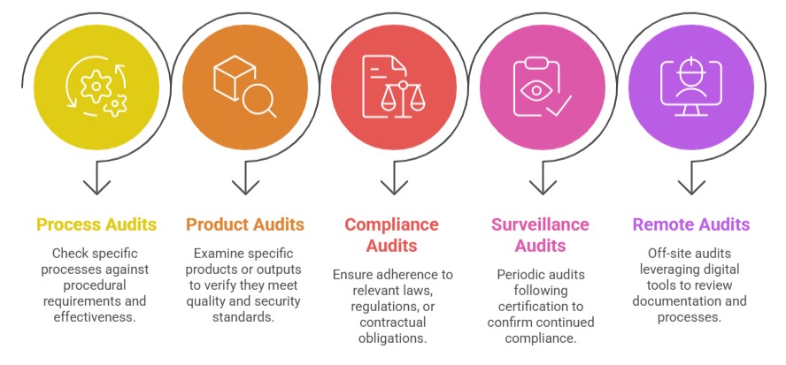 Beyond these three primary types, audits may also be classified by method or focus, such as: