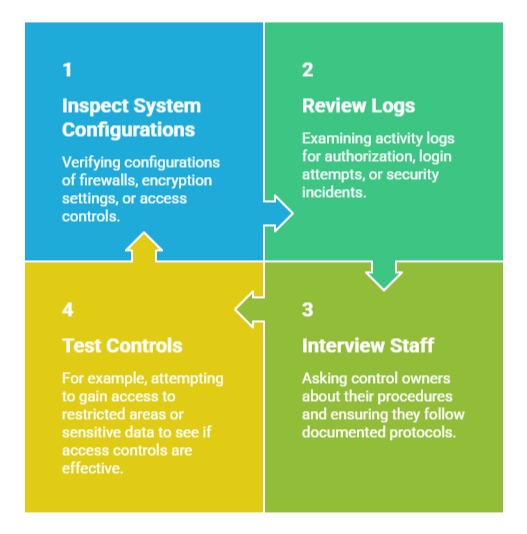 Unlike document review, which focuses on policies and records, observation and inspection involve direct, firsthand assessment of the physical and operational environment.