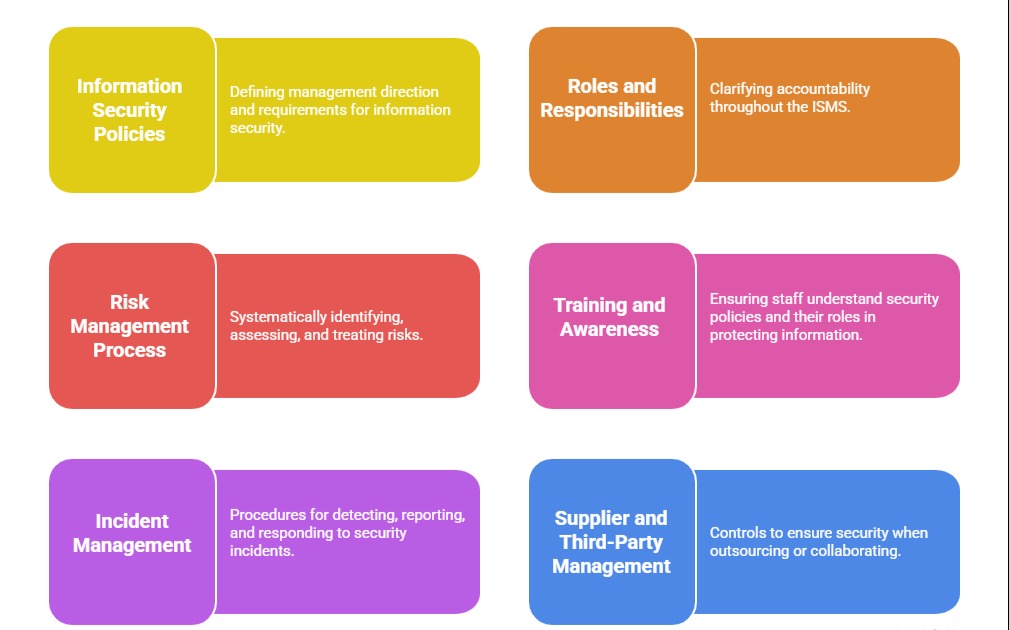 The ISO 27001:2022 Annex A groups controls into four broad themes: organizational (procedural), people, physical, and technological. Implementing a coordinated set of controls across these categories strengthens security while addressing human, technical, and physical vulnerabilities comprehensively.