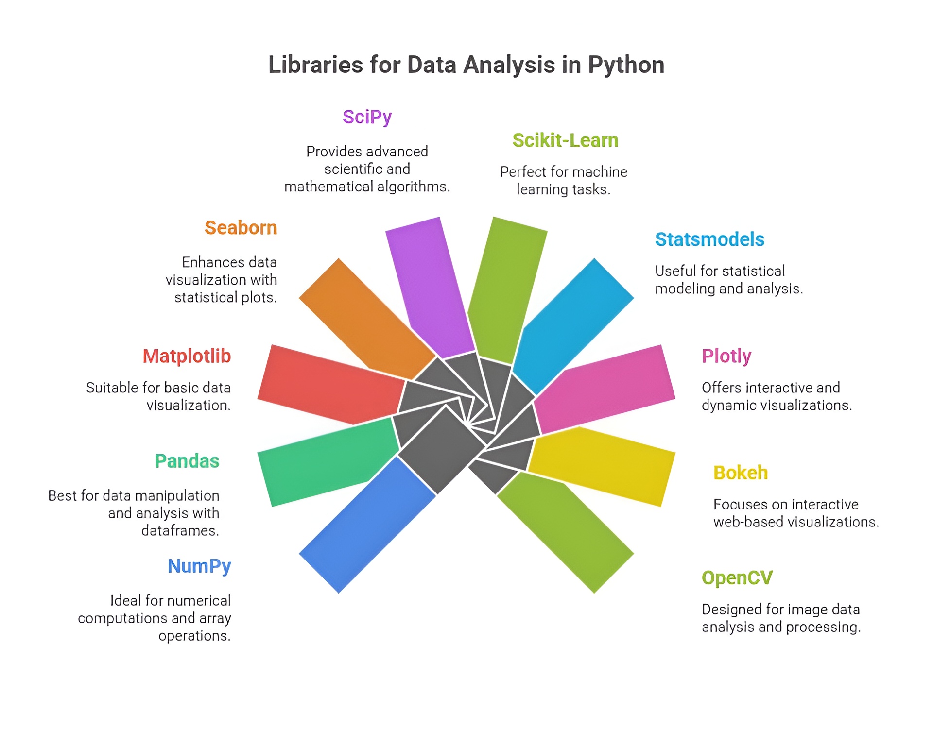 Python’s popularity in data analysis is largely due to its rich ecosystem of libraries that provide tools for data manipulation, visualization, statistical analysis, and machine learning. These libraries simplify complex tasks, reduce development time, and allow analysts to extract meaningful insights from raw data efficiently.