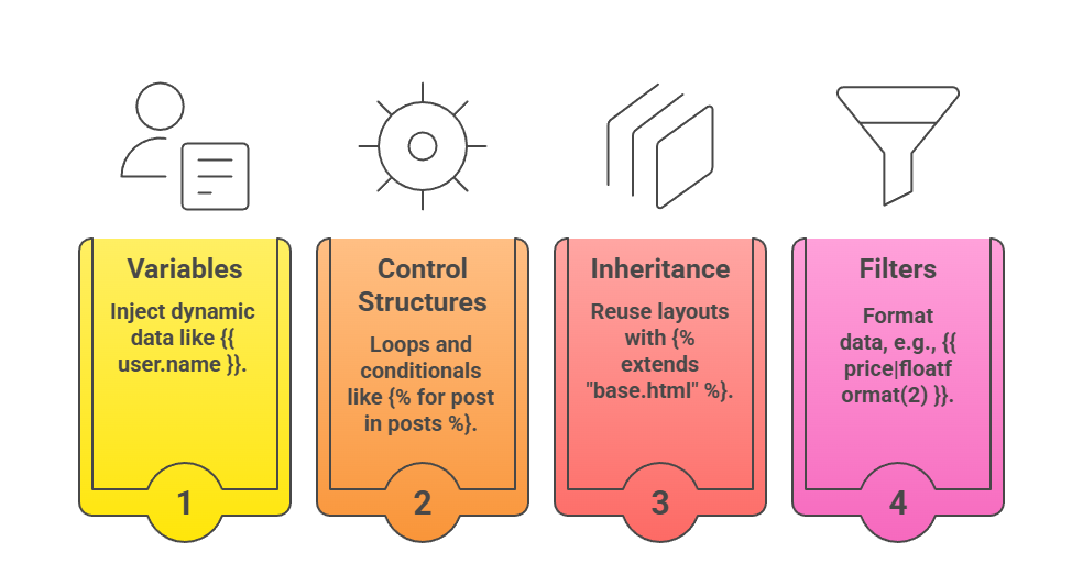Jinja2 is Flask's default templating engine, blending Python logic with HTML to create dynamic pages without writing raw HTML strings in Python. It keeps your code clean, reusable, and maintainable—perfect for scaling from simple sites to complex apps.