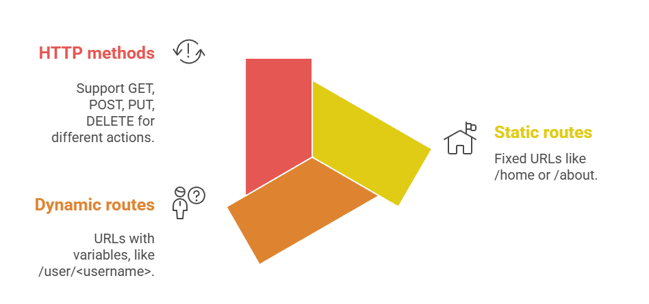 return f'<h1>Post #{post_id}</h1>'Visiting /post/42 dynamically renders content based on the post_id