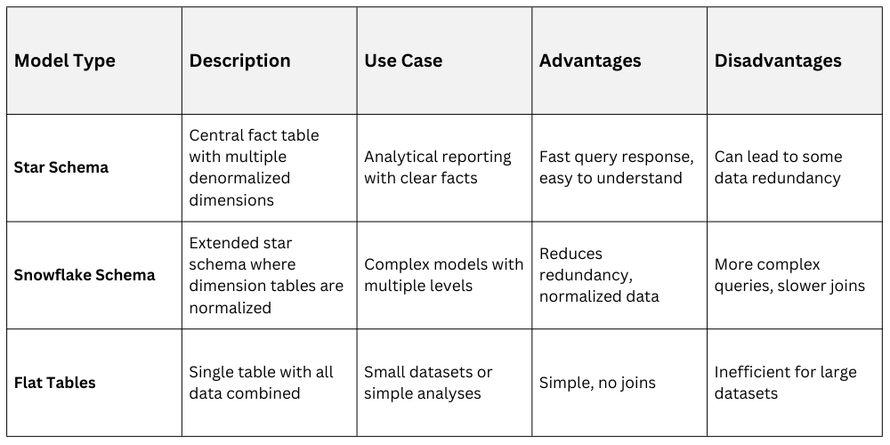 Power BI supports a variety of modeling paradigms including star schema, snowflake schema, and flat tables, but star schema is widely preferred for its balance of simplicity and analytical power.