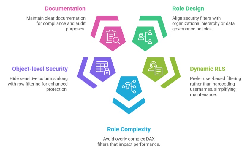 Strong RLS practices help protect sensitive data while enabling controlled data access. The list below highlights key techniques for implementing secure and scalable RLS.