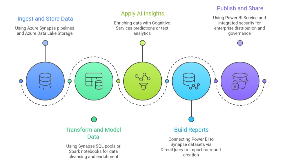 Together with Azure Synapse, Power BI enables organizations to create enterprise-grade semantic models, apply role-based security, and provide near-real-time dashboards with high performance and extensive security compliance.