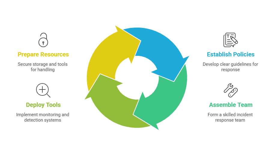 Incident response preparation involves establishing procedures, assembling skilled teams, deploying detection tools, and ensuring resource readiness. The following points explain each essential step for effective incident management.