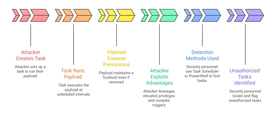 Tasks set to run periodically or at system events can silently re-launch malware.