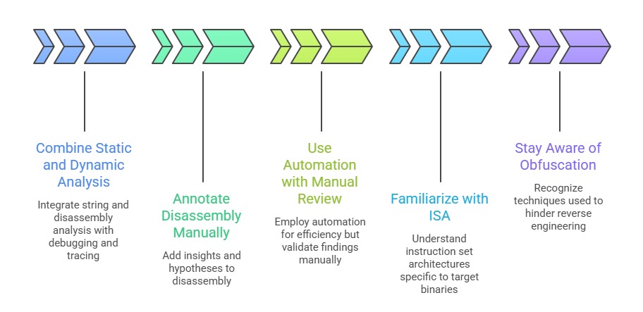 It plays a crucial role in vulnerability research, malware analysis, software debugging, and interoperability. Central to reverse engineering are techniques such as string analysis, disassembly, and understanding program logic flow.