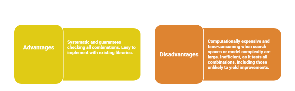 Use Cases: Small hyperparameter spaces with limited parameter ranges. When computational resources are sufficient.
