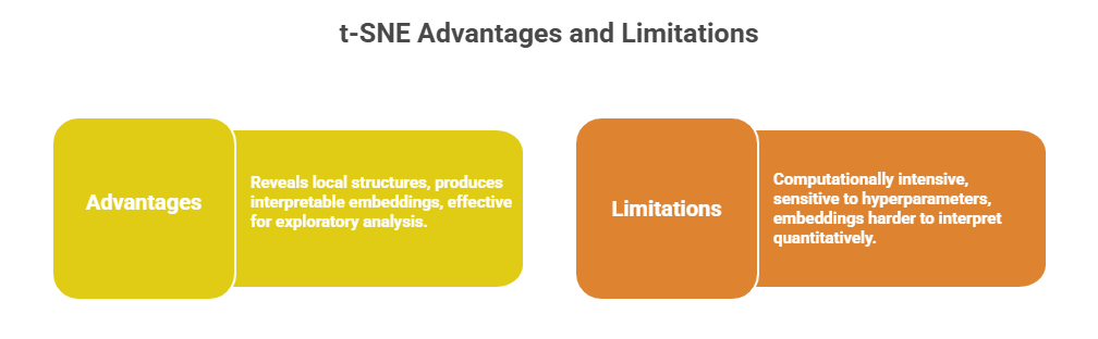 2. Maps these probabilities to a low-dimensional space using a Student’s t-distribution to model similarities.