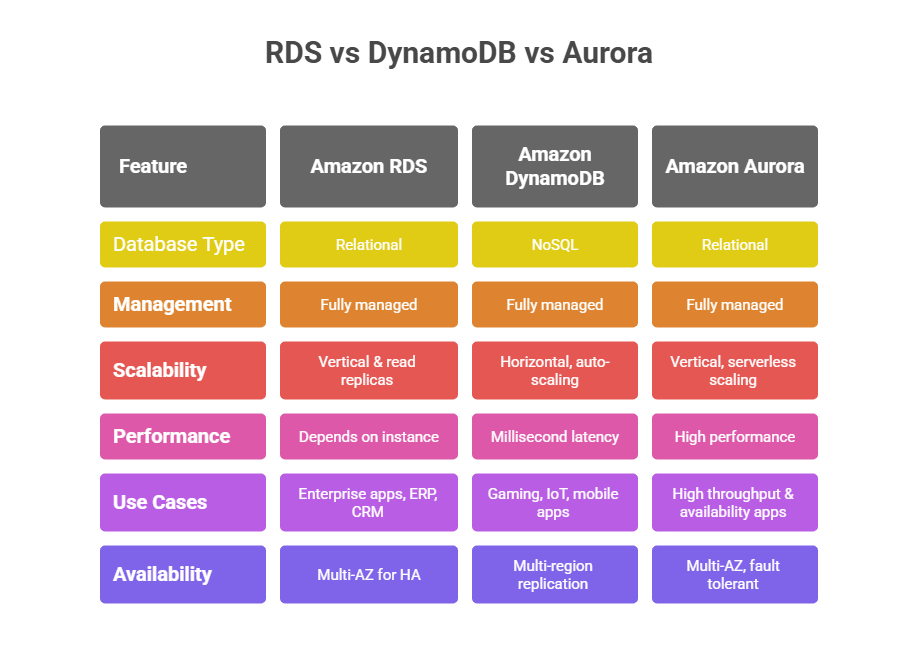Aurora is a MySQL- and PostgreSQL-compatible relational database that delivers enterprise-grade performance and availability at a fraction of traditional commercial database costs. Fully managed through RDS, Aurora offers features exceeding standard open-source databases.