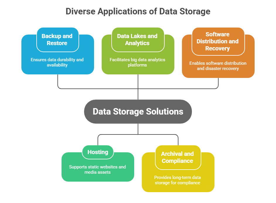 S3 is designed to deliver industry-leading scalability, data availability, and performance, making it ideal for a wide range of applications, including data lakes, backup and restore, archival, content distribution, and big data analytics.