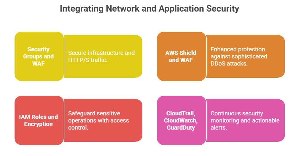 AWS provides a comprehensive suite of tools and best practices to design resilient, secure network architectures alongside robust application defence mechanisms.