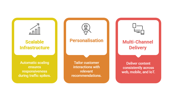 AWS enables businesses to offer faster, more reliable, and personalised experiences to their customers. This is achieved through scalable infrastructure, analytics, and AI-powered services that help understand customer needs and behaviours deeply.