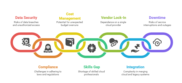 6. Integration Complexity: Migrating legacy applications and integrating cloud services with on-premises systems can be technically challenging and resource-intensive.