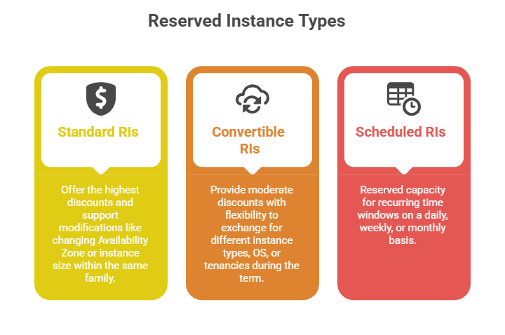 | Reserved Instances | Upfront or monthly | Up to 72% off | 1- or 3-year term | Steady-state apps, production servers |