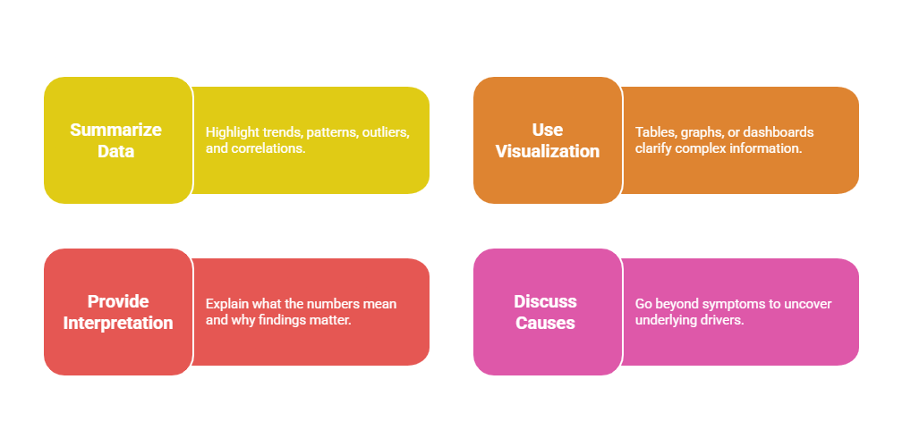 A strong analysis section builds credibility for the recommendations and guides the audience to understand the “why” behind the problem.