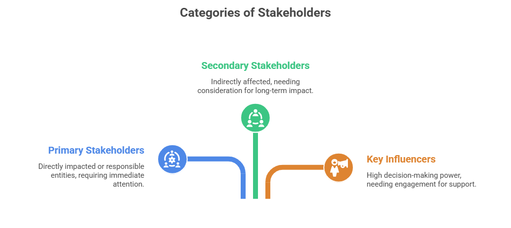 Map stakeholders on matrices such as the Power-Interest Grid to categorize influence levels and engagement needs.
