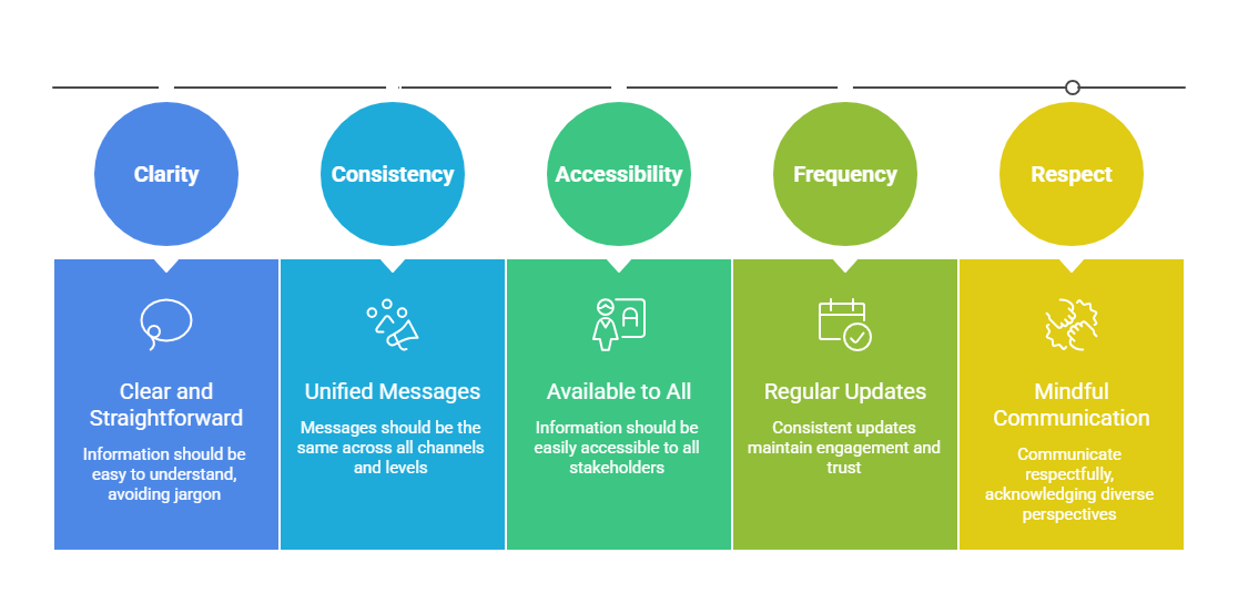 Communicating with openness fosters credibility and engagement when done thoughtfully and systematically. Highlighted below are the principles that form the foundation of transparent communication.