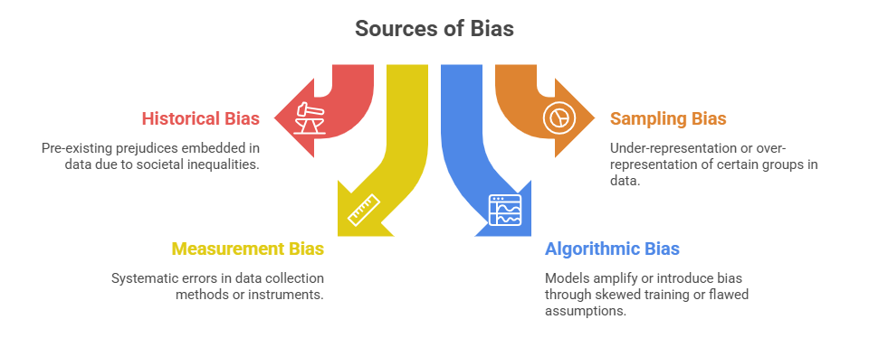 Understanding bias is critical to ensure fairness and reliability in analytics and machine learning. Common forms are pre-existing societal biases, skewed sampling, flawed measurements, and algorithmic distortions.