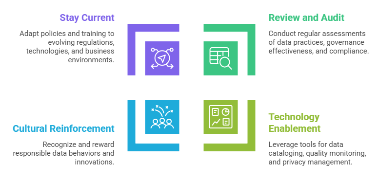 1. Embedding Policies: Data governance principles become part of standard workflows and decision-making.