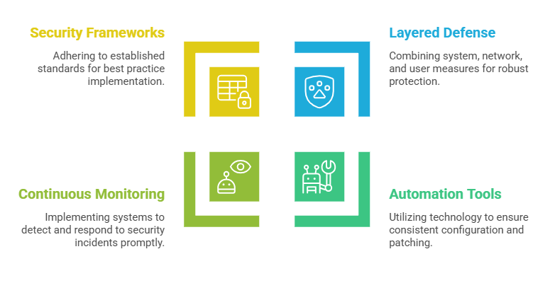 System hardening focuses on strengthening operating systems, servers, and endpoints by reducing their potential attack surfaces. This involves removing or disabling unnecessary software, services, and default accounts, as well as applying timely patches and updates to close known vulnerabilities.