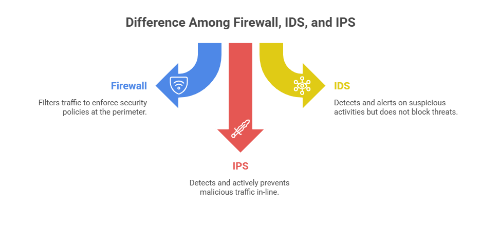 Role: IPS provides real-time protection by stopping attacks before they reach target systems, reducing damage and breach potential.