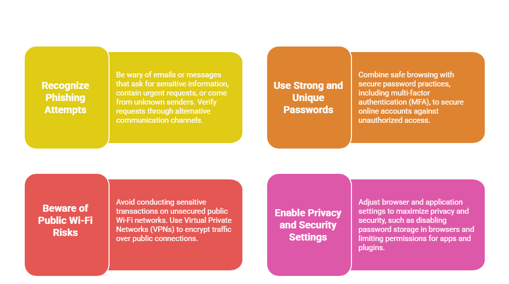 Adopting secure browsing habits is critical in minimizing risks from phishing, malware, and other online exploits. Highlighted here are effective approaches to maintain a safer online experience: