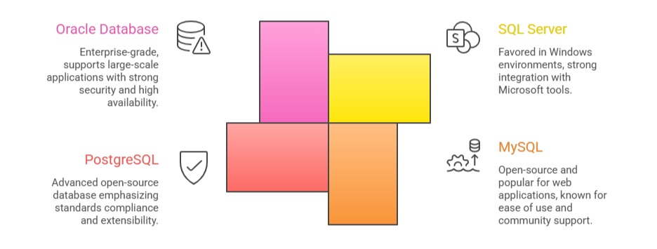 Several popular relational database management systems (RDBMS) are widely used in enterprises: