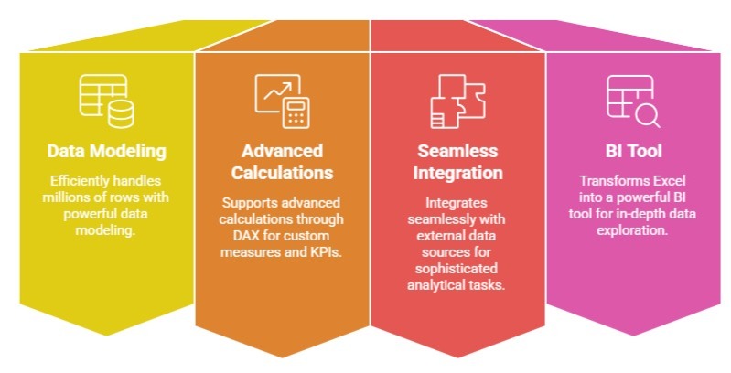 It equips Excel with powerful data modeling capabilities, enabling it to efficiently handle millions of rows.