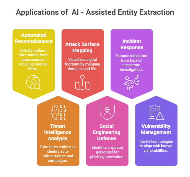 AI-assisted entity extraction is a powerful technique in the field of cybersecurity and ethical hacking that leverages artificial intelligence algorithms to automatically identify and extract key entities such as domains, people, organizations, technologies, and other relevant data from unstructured text and diverse data sources.