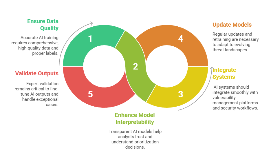 Ensuring accurate, interpretable, and continuously learning AI models is essential for risk-focused vulnerability management. Below are the main challenges and best practices to achieve consistent results.